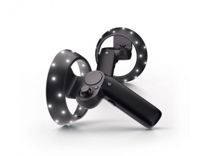At first glance, the controllers have a similar look to the Oculus Touch and Vive controllers. They have a thumb stick like the Oculus Touch, a touchpad like the Vive, and a wand-like design with a tracking ring on the end [2]. According to a CNET report, the controllers will not work with HoloLens [6].